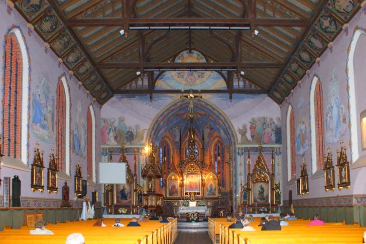 Neogotycki kościół Narodzenia NMP (1880); we wnętrzu drewniana gotycka figurka Matki Boskiej z Dzieciątkiem (XV w., koronowana 1937).