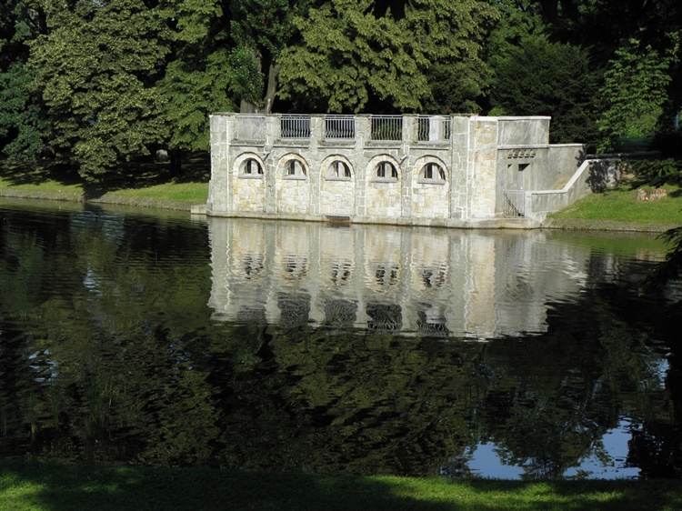 Park o powierzchni około 10 000 m2, ze ścieżkami spacerowymi, stawem z zabytkowym budynkiem szalet oraz placem zabaw dla dzieci.