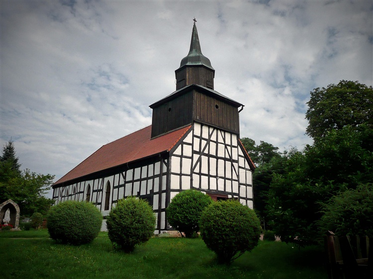 Kościół Świętej Trójcy, dawny ewangelicki, konstrukcji szachulcowej (1681, rozbudowany 1708, 1727).