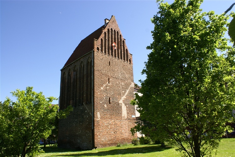 Gotycka Baszta Prochowa z resztą muru obronnego (XV/XVI w., przebudowana 1960). Nazwa Baszta Prochowa powstała po 1945 r.W rzeczywistości ta jedyna,zachowana do dzisiaj baszta była basztą lontową. Rzeczywista baszta prochowa była okrągłym budynkiem (prawdopodobnie) i znajdowała się gdzieś u zbiegu ulicy Kagtedralnej i Rzecznej. Podobno prawdziwa Baszta Prochowa spłonęla 3 maja 1657 r, a raczej wybuchła, gdy uderzył w nią piorun. Eksplozja podobno była straszna, a baszty prochowej nie odbudowano, gdyż już wtedy w mieście powstały nowożytne fortyfikacje, a po 1945 r Basztę Lontową przezwano niesłusznie Prochową.