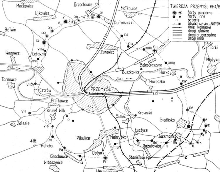Forty twierdzy przemyskiej (1880): fort GW IIb "Cyków", fort pancerny GW II "Jaksmanice", fort W Ha "Mogiłki".