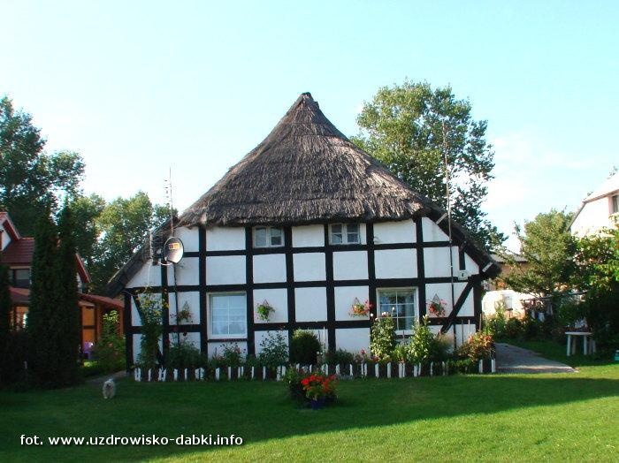 Chałupy rybackie, głównie konstrukcji szachulcowej (XIX w.).