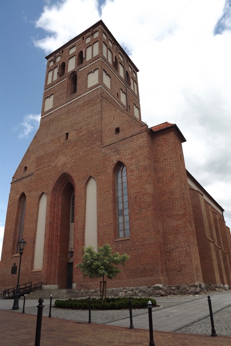 Trzeba wspiąć się solidnie na palce, by dostrzec wydrapany w cegłach ściany bazyliki napis: "Tu Moskal leszy ktor...". Napis zachował się we fragmencie, pierwotnie głosił ponoć "Tu Moskal leszy ktory spadł z wieży", ale i szczątkowy jest atrakcją turystyczną. Upamiętnia wydarzenie, jakie miało miejsce w Chojnicach 25 maja 1759 r.