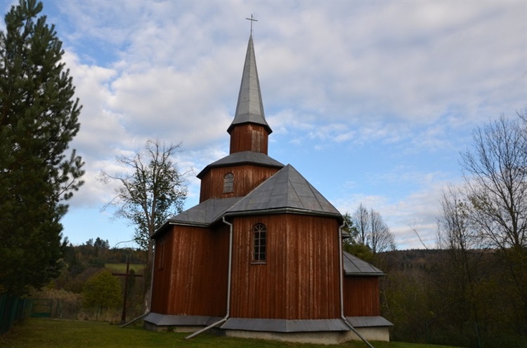 Jest to świątynia zbudowana w 1914 r. drewniana, konstrukcji zrębowej, wzniesiona na planie krzyża greckiego, z zamkniętym trójboczne prezbiterium i babińcem poprzedzonym gankiem. Podczas rekonstrukcji świątyni zlikwidowana została wieńcząca ją kopuła, która została zastąpiona wieżyczką. Przeniesioną cerkiew adaptowano na kościół katolicki p.w. Piotra i Pawła.