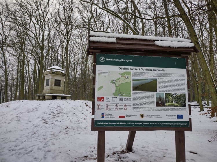 W bliższym Widlic "Wiośle Małym" warto wspiąć się na skarpę i odnaleźć osobliwy pomnik. To licowana kamieniem czworościenna budowla, wysoka na ok. 3 m. Przypomina antyczną budowlę. Na każdej ze ścian znajdują się tablice z zachowanymi niemieckimi napisami. Z ich treści wynika, że pomnik postawiono dla uczczenia Gottlieba Schmida (1800-1881), projektanta prac regulacyjnych w Dolinie Dolnej Wisły, które prowadzono w latach 40. XIX w. To, co dzisiaj można oglądać, stanowiło przed laty zaledwie podstawę wysokiej konstrukcji pomnika. Obiekt znajduje się ok. 300 m na południowy-zachód od końca wału przeciwpowodziowego w Widlicach.