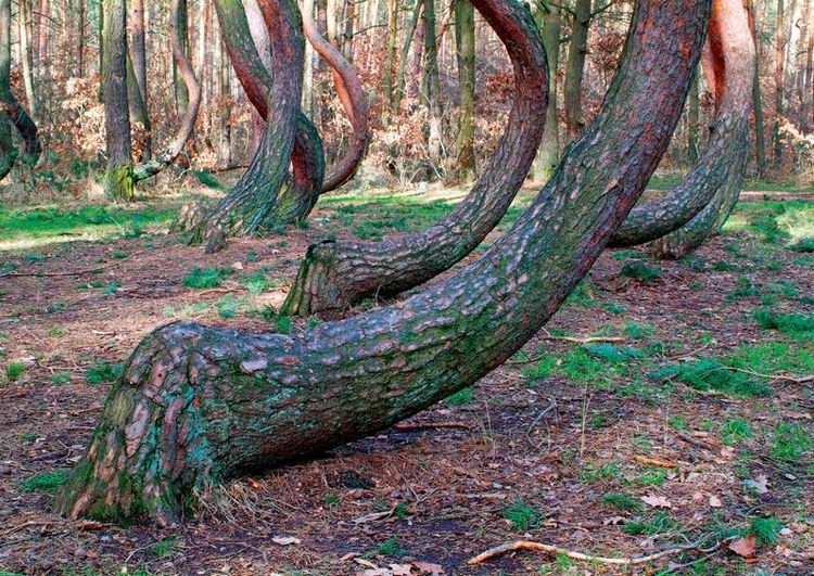 Okazuje się, że łatwiej stwierdzić, co było przyczyną zniekształcenia drzew, niż odpowiedzieć na pytanie, czy było to celowe działanie człowieka, czy przypadkowe mechaniczne uszkodzenie. Istnieje teoria, że młode drzewa stratowały stacjonujące tu w 1945 r. czołgi. Jednakże las miał wówczas około 15 lat, a liczba słojów w sękach przy zagięciu pozwala sądzić, że do uszkodzenia doszło jeszcze przed wojną, gdy drzewa miały około 7 lat. Dlatego powszechnie sądzi się, że krzywe sosny w Nowym Czarnowie są efektem świadomych działań człowieka. Zapewne miały być materiałem dla lokalnego producenta sań lub mebli. Historia ponoć zna przypadki celowego uszkadzania drzew, by otrzymać drewno o określonej krzywiźnie, służące potem do budowy łodzi, kadzi czy mebli. Zagadka powstania "krzywego lasu" pozostanie chyba nierozwiązana - niemieccy leśnicy, którzy go sadzili i pielęgnowali, zapewne już nie żyją.