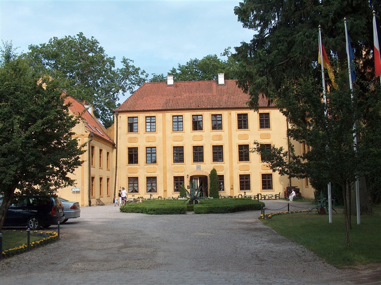 W tłumie pomorskiej szlachty rodzina von Krockow wyróżniała się zamożnością i wyjątkowo długim trwaniem, gdyż tutejsze dobra, składające się z kilku okolicznych wsi, należały do niej co najmniej od końca XIII w. aż do zakończenia II wojny światowej. Kiedy późną jesienią 1598 r. do Krokowej przybył z wizytą król Zygmunt III Waza, ówczesny pan tych dóbr właśnie dożywał swoich ostatnich dni. Pułkownik Rajnold von Krockow, bo o nim mowa, był postacią o niezwykle barwnym życiorysie. Już jako szesnastoletni młodzieniec rozpoczął służbę na dworach niemieckich książąt, potem walczył w wojnach hugenockich we Francji i uczestniczył w wyprawach przeciwko Moskwie i Turcji. Chociaż nie ma na to bezpośrednich dowodów, a tradycja rodzinna chętnie sięga po wątki legendarne, wszystko wskazuje na to, że to właśnie Rajnold zbudował w Krokowej pierwszy szlachecki zamek, którego pozostałości - w postaci szerokiej nawodnionej fosy - zachowały się do dzisiaj. Okazały neobarokowy pałac - atrakcja okolicy - obecnie stojący na wzniesieniu zamkowym, jest efektem wielu późniejszych przebudów. Mury oryginalnego dworu z końca XVI w. tkwią w środkowym skrzydle tej budowli.