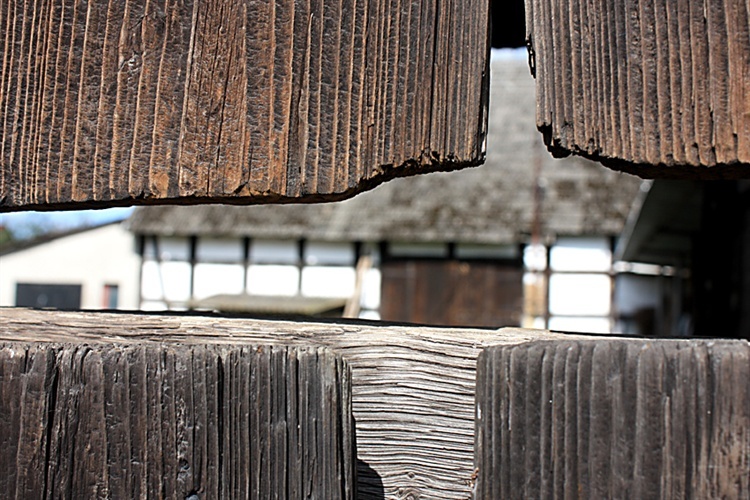 Od wieków domy i zabudowania gospodarcze wznoszono w ten sposób, że najpierw stawiano drewniany, dębowy szkielet, który wypełniano specjalnie przygotowaną gliną. Dębowe drewno z czasem ciemniało, więc gliniane wypełnienie, każdego roku bielone, odcinało się od niego coraz bardziej. Typowa ściana tutejszego budynku wygląda jak biała płaszczyzna pocięta pionowymi, poziomymi i skośnymi ciemnymi liniami jej szkieletu.