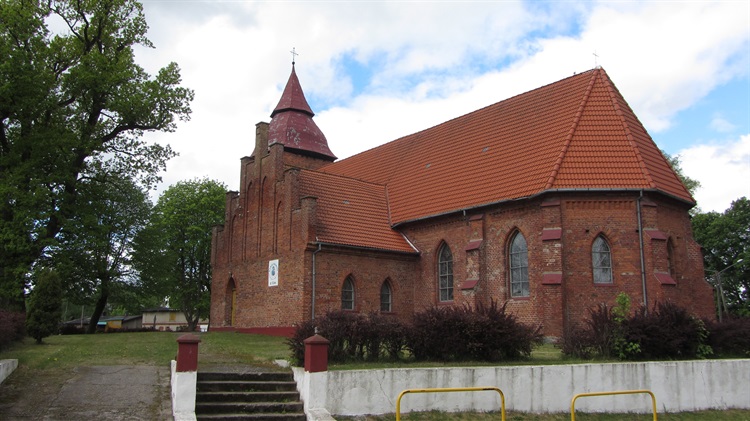 Najstarszą częścią kościoła są cztery zachodnie przęsła pochodzące z XVI w. Wieżę dobudowano najprawdopodobniej wiek później, przykrywający ją hełm powstał w roku 1739. W latach 1864-1865 rozbudowano kościół nadając mu charakter neogotycki. Z czasów ostatniej rozbudowy pochodzi znaczna część wyposażenia: ołtarz boczny, droga krzyżowa, malowidła ścienne, ławki, empora i prospekt organowy. Najstarszymi zabytkami ruchomymi są: kamienna chrzcielnica z okresu powstania świątyni i XVII-wieczny ołtarz główny.