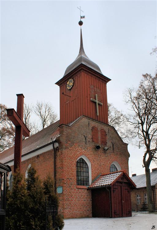 Gotycko-barokowy kościół pw. Najświętszej Marii Królowej Polski jest centralnym punktem wsi. Wniesiony został w drugiej połowie XIV wieku - z tego czasu pochodzą mury prezbiterium. Na przestrzeni burzliwych dziejów płonął dwukrotnie, a jako murowany został odbudowany dopiero w 1684 przez gdańskich mieszczan.