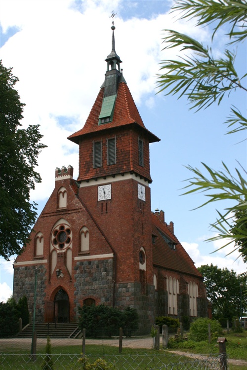 Kościół ewangelicki zbudowany pod patronatem cesarzowej Wiktorii Augusty w 1901 r. w stylu neogotyckim. Odrestaurowany ze zniszczeń wojennych przez proboszcza lokalnej wspólnoty katolickiej ks. Gerarda Borysa i poświęcony w 1990 r. służy jako świątynia filialna.