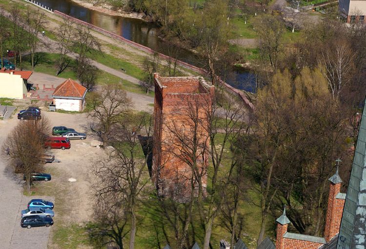 Z nieistniejącego już zamku biskupiego z XIII w. pozostała jedynie trzykondygnacyjna gotycka wieża wzniesiona na przełomie XIII i XIV w. na planie kwadratu, która pierwotnie łączyła zamek z przedzamczem.