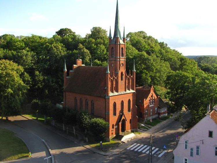 Dzisiejszy kościół św. Wojciecha, to obiekt należący kiedyś do istniejącej w mieście od 1772 roku wspólnoty ewangelickiej. Utrzymany w stylu neogotyckim budynek, którego projektantem był Fryderyk Stüller z Berlina powstawał w latach 1857 – 1861 natomiast w roku 1903 do kościoła dobudowano dom parafialny.