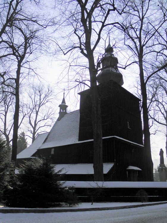 Pochodzący z XVII wieku, zabytkowy modrzewiowy kościół św. Barbary znajduje się w będących obecnie dzielnicą Bielska Białej Mikuszowicach Krakowskich znajdujących się w malowniczym zwężeniu doliny Wisły, zwanej Bramą Wilkowicką. W powstałych w wyniku podziału XIII wiecznych Mikuszowic, Mikuszowicach Krakowskich, pierwszy kościół drewniany istniał już w XIV wieku. Nie przetrwał wielkiej powodzi, która nawiedziła okolicę. W 1455r. na zlecenie byłego zbójnika Macieja Kmity wzniesiono drugi, sosnowy, który do XVI wieku był filią parafii w Łodygowicach.