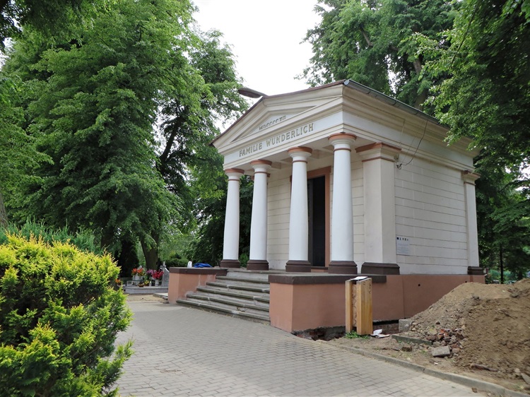 Cmentarz ewangelicki, ob. rzymskokatolicki w Starym Polu został założony w 1843 roku. Sześć lat później na jego terenie wybudowano obecny kościół filialny. Godna polecenia jest kaplica cmentarna z 1912 roku wybudowana jako mauzoleum rodziny Wunderlich. Obiekt ma formę greckiej świątyni z portykiem od frontu.Kondygnacja dolna to krypta. Obecnie grobowiec pełni funkcję kaplicy pogrzebowej.