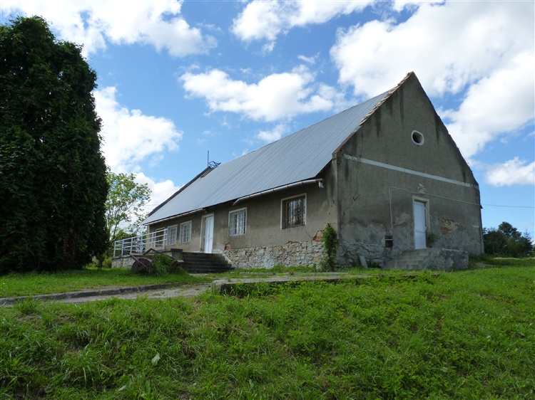 Murowany z kamienia i cegły spichlerz to budynek parterowy, podpiwniczony, ze szczytami murowanymi, wyprowadzonymi nieco powyżej kalenicy, z dachem siodłowym przykrytym dachówką.
