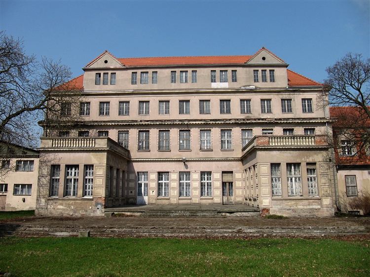 Pałac (pocz. XX w.) z pozostałością zabudowań gospodarczych i parku.