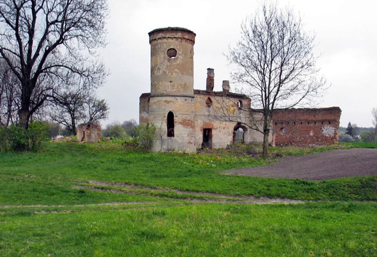 Park krajobrazowy z ruinami pawilonu gospodarczego i klasycystycznym spichlerzem (XIX w.).