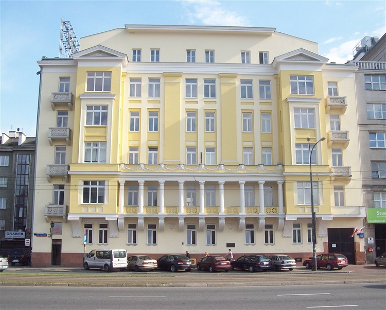 Bardzo ciekawym elementem architektonicznym jest fasada na wysokości pierwszego piętra - zdobi ją dorycka kolumnada. Ostatnią kondygnację zaprojektowano w formie attyki (niestety attyka uległa zniszczeniu w czasie II wojny światowej). Kamienica została odnowiona w 2009 roku. W latach 1940-1945 w budynku mieściła się kwatera Komendy Głównej Batalionów Chłopskich.