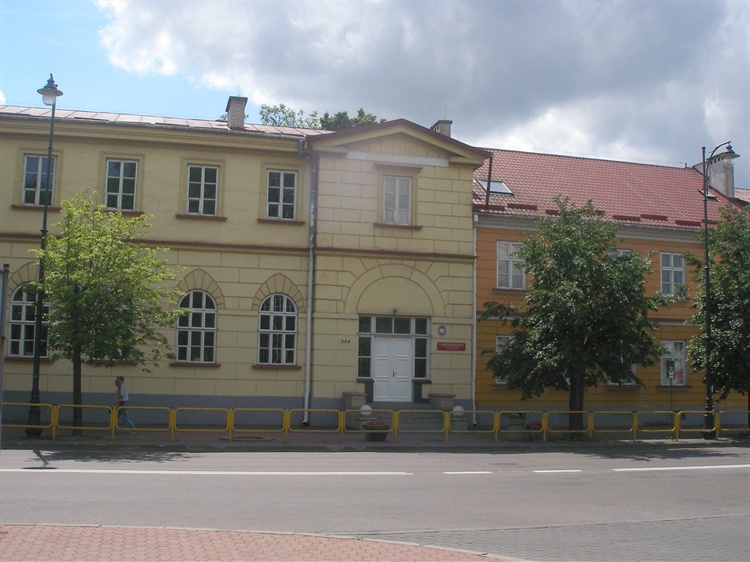 Budynek przy ulicy Adama Mickiewicza 3 wzniesiono w latach 1843–1845. Obiekt jest dziełem warszawskiego architekta Antonio Corazziego. Pierwotnie w budynku mieściło się Gimnazjum Męskie im. Karola Brzostowskiego.