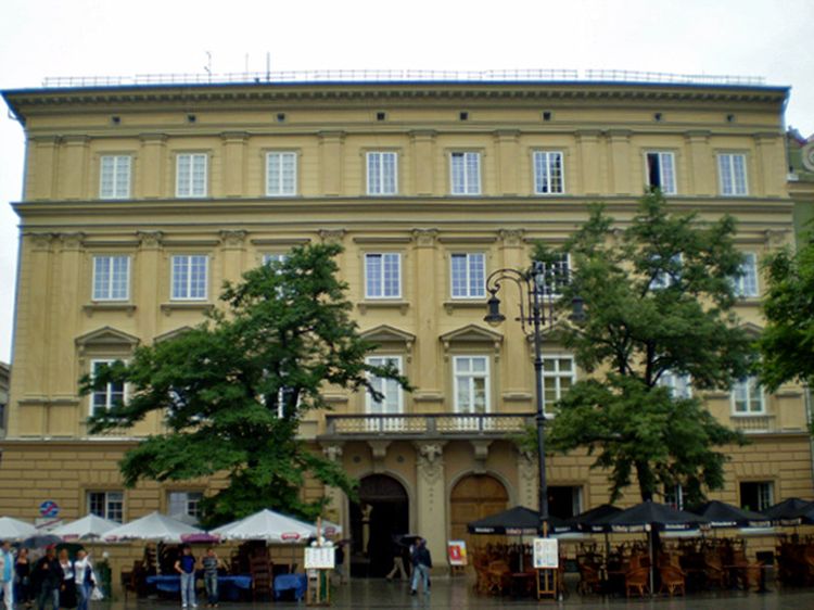 Pałac Pod Baranami (Rynek Główny nr 27) powstał z trzech średniowiecznych kamienic. W XVI w. był własnością Justa Decjusza, właściciela pałacu w Woli Justowskiej, a później króla Stefana Batorego. W XVII w. książęta Ostrogscy przekształcili go we wspaniałą rezydencję z reprezentacyjnymi salami I piętra. Od 1822 r. do II wojny światowej stanowił własność rodziny Potockich.