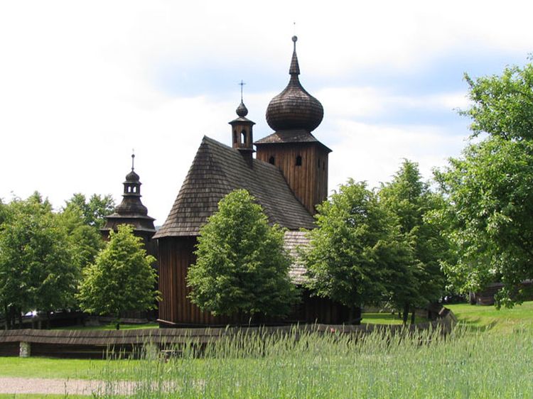 Domy kryte strzechą lub gontem są w pełni wyposażone w sprzęty, jakich używała ludność w XVIII i XIX w. Znajduje się tu m.in. zagroda wiejska z domem mieszkalnym połączonym z oborą, stajnią, stodołą i spichlerzem. Osobliwością są stodoły sześcio- lub ośmioboczne, o konstrukcji zrębowej, w której stosowano specjalny rodzaj ciesielskiego złącza, tzw. "jaskółczy ogon".