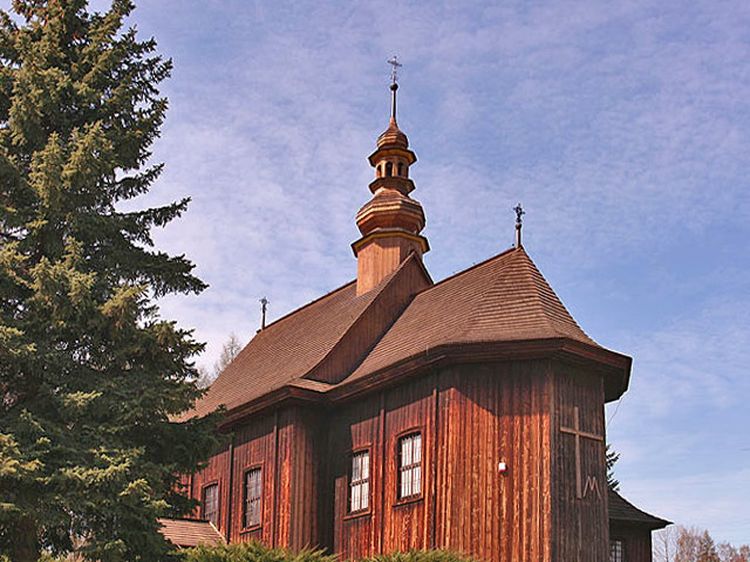 Drewniany kościół NMP Królowej Polski, zbudowany w 1657 r. W 1970 r. został przeniesiony z miejscowości Gołcza.
