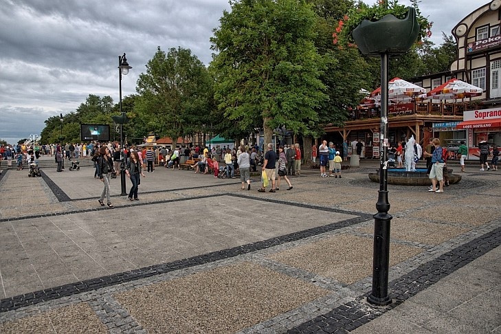Nadmorski park spacerowy powstał w 1875 roku. Wkrótce potem przy promenadzie powstały ekskluzywne pensjonaty i restauracje. Jednym z miłośników spacerów wzdłuż usteckiej plaży wschodniej był książę Otto von Bismarck. Wzdłuż promenady rozłożone są pensjonaty i restauracje.
