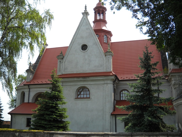 W miejscu pogańskiego kultu bożka Światowida, Iwo Odrowąż, kanclerz księcia Leszka Białego, wzniósł w 1217 r. drewniany kosciół. Po 500 latach ówczesny pleban rozebrał budowlę i zbudował kosciół murowany. W 1792 r. ks. Karsznicki wg własnego projektu wzniósł póżnobarokowy kościól stojący do dziś na cyplu nad doliną rzeki Opatówka. W kościele znajdują się relikwie Krzyża Świętego z oryginalnym dokumentem opatrzonym pieczęcią papieską.