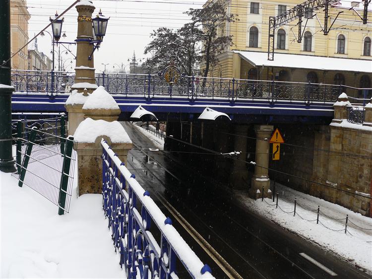 Pierwsze w Krakowie dwupoziomowe skrzyżowanie powstało w latach 1896-1898, dzięki funduszom Austriackiej Kolei Państwowej. Metalowe przęsło wiaduktu wspiera 16 kamiennych kolumn. Metalowe są również finezyjnie wykonane balustrady. Projekt był dziełem znanego architekta Teodora Talowskiego, autora m.in. secesyjnych kamienic przy ul. Retoryka.