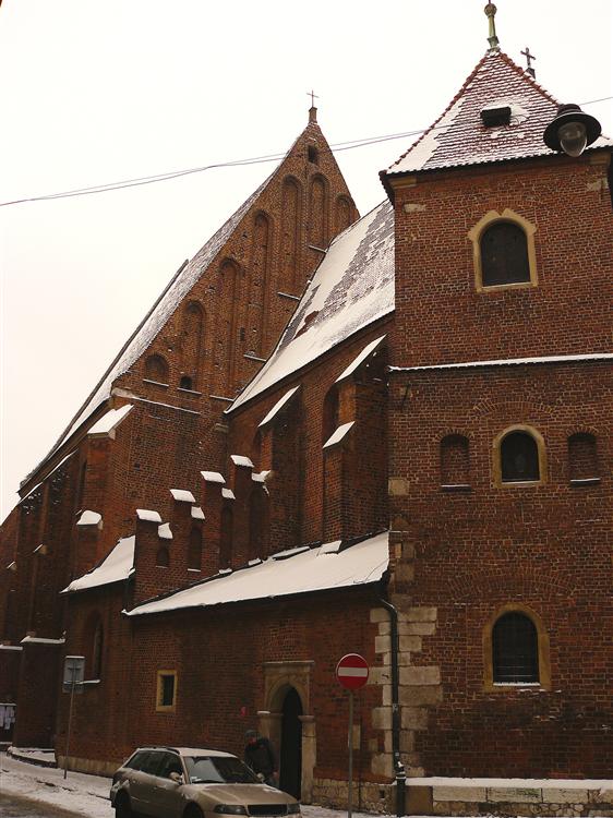 Ufundowany w poł. XIII w. przez Bolesława Wstydliwego (z pierwotnej budowli zachowało się prostokątne prezbiterium). Nawę i wieże dobudowano w XV w. W nawie drewniana XVI-wieczna rzeźba Golgota (jej kopia znajduje się w niszy na zewnątrz prezbiterium). Rokokowa ambona w kształcie serca z krzyżem - godła księży marków.