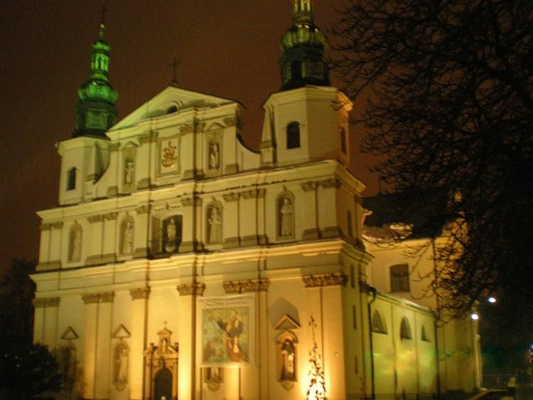 W czasie potopu szwedzkiego uległ całkowitemu zniszczeniu (to od tej strony Szwedzi zdobywali Wawel). Kościół odbudowano w stylu barokowym. Autorem projektu był Ludwik Mieroszewski. Kościół ma układ bazylikowy, a nad przecięciem nawy głownej i transeptu znajduje się niska kopuła, zbudowana tak, by nie zasłaniała widoku z Wawelu na przedpola w czasie ewentualnych walk.