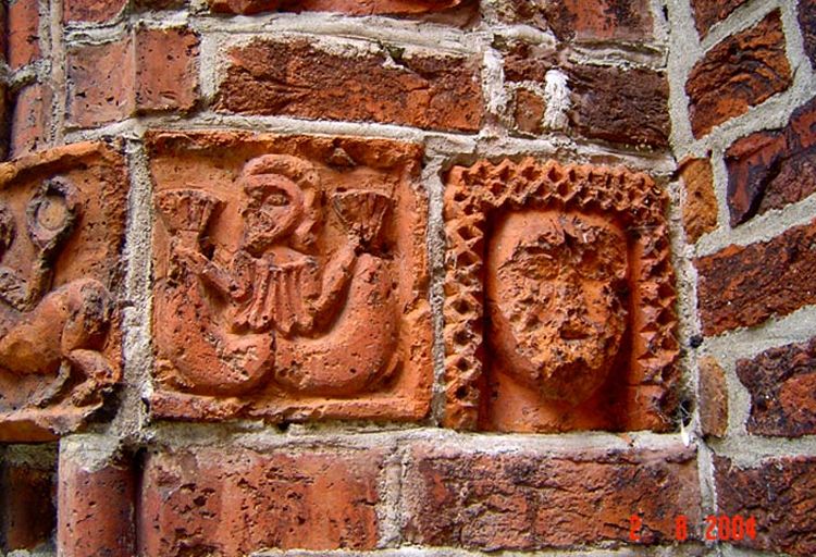 Dużą wartość architektoniczną mają boczne portale kościoła - północny i południowy. Zdobią je tzw. bestiariusze, czyli płaskorzeźby wypalone w cegle przedstawiające postacie na pół ludzkie i mityczne (smoki, syreny, centaury, rycerzy, jednorożce). Z kolei portal główny zbudowano z cegły czerwonej i czarnej, które tworzą interesujące pasy. Swój dzisiejszy kształt portal zyskał w połowie XIX w. kiedy to został przebudowany.