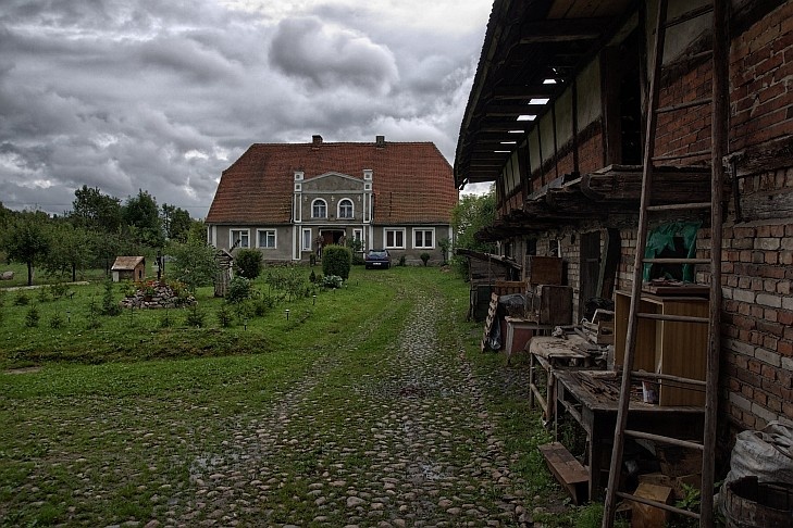 Położona w centrum wsi, na wzniesieniu, zagroda od wieków należała do sołtysa. Sołtys zajmował szczególną funkcję i pozycję w społeczności. Posiadał wolność osobistą, nie był obciążony podatkami i dziesięcinami. Stanowisko było dziedziczone w rodzinie. Podstawą jego egzystencji była gospodarka rolna prowadzona na areale ziemi o 1/3 większym niż innych kmieciów. Jako dodatkowe uposażenie posiadał staw. W 1732 roku sołtysem wsi był Erdmann Albrecht. W drugiej połowie XIX wieku, w 1862 roku sołtysem był August Wilhelm Albrecht, mieszkający w tej zagrodzie. Miał on najwięcej ziemi we wsi (około 68 ha). W 1910 roku właścicielem zagrody był Albert Albrecht. W zagrodzie było wówczas dziewięć budynków, z których pięć istnieje do dzisiaj. Dwa stanowią posesję nr 25 (budynki robotników najemnych).