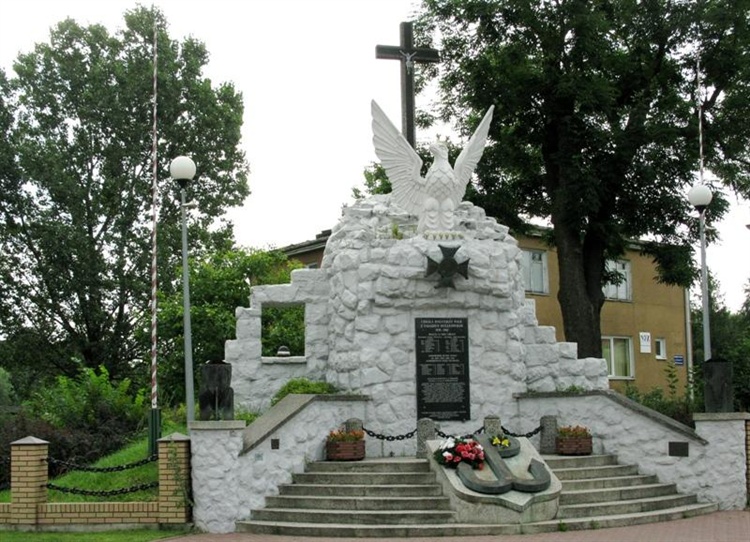 Pomnik pamięci poległych i pomordowanych 1939-1945, usytuowany na placu III Kompanii Armii Krajowej, uroczyście odsłonięty w 1962 r.