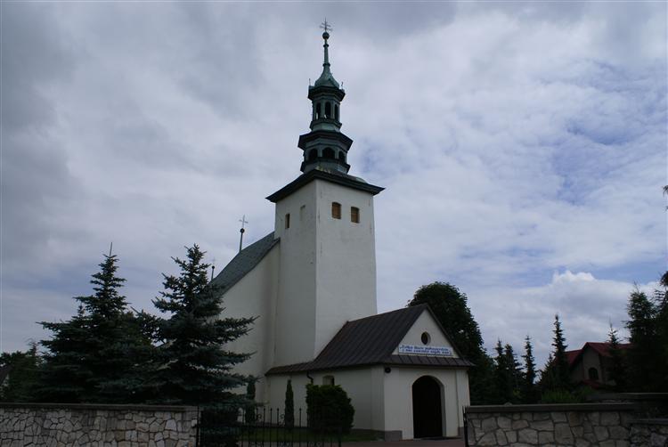 Początkowo kościół był znacznie mniejszy niż dziś - składał się z prezbiterium i zakrystii od strony południowej. Rozbudowany został zapewne w XVI w. Dodano mu nawę, wieżę, przybudówkę pełniącą obecnie funkcję zakrystii oraz kruchtę od południa. Dziś kościół ma węższe od nawy prezbiterium zakończone absydą, mury wzmocnione skarpami, a po obu stronach prezbiterium znajdują się skarbczyk kościelny i zakrystia. Od frontu wznosi się wieża o wyglądzie potężnej baszty. Za prezbiterium od strony zewnętrznej znajduje się zabytkowy ogrójec, w kościele zaś - trzy ołtarze: główny z obrazem Matki Bożej i św. Mikołaja oraz boczne św. Antoniego i Matki Bożej. Dach kościoła oraz wieża są pokryte blachą miedzianą.