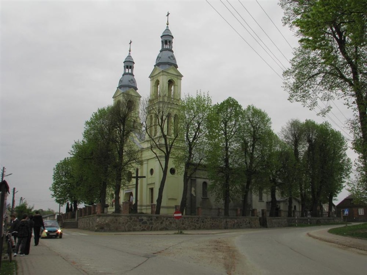 Zbudowany na miejscu dawniejszych świątyń w latach 1845-1846 i przebudowany w latach 1885-1901 kościół to okazała budowla neobarokowa, jednonawowa, z półkoliście zamkniętym prezbiterium i dwuwieżową fasadą. We wnętrzu uwagę zwraca XVII-wieczny obraz Matki Bożej Szkaplerznej z Dzieciątkiem oraz zdobiące go srebrne suknie, również z XVII stulecia.