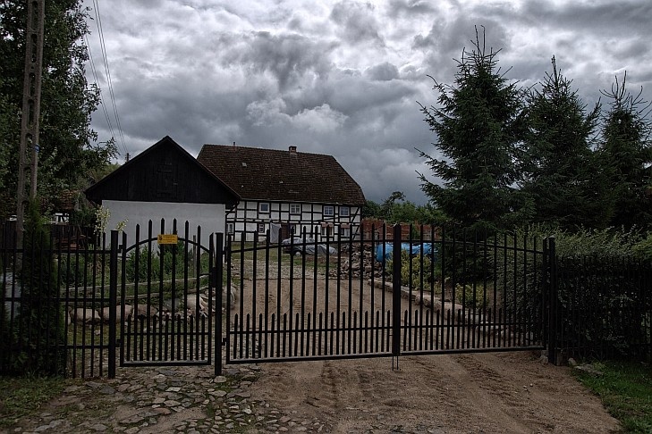 W 1912 roku wybudowano nowy budynek inwentarski. Budynki tworzyły zamknięty czworobok, który po pożarze przekształcił się w otwartą zagrodę. Spłonął wówczas budynek bramny i chlewy. Z dawnych budynków zachowały się cztery. W głębi podwórza stoi duży ryglowy dom. Na belce nad wejściem zachował się napis: "B.H.P.A. - B.M.C.A. DEN 9 MAI 1856" (inwestor Peter Albrecht, budowniczy C.A., 9 maja 1856 ). Po wschodniej stronie podwórza stoi zbudowana w połowie XIX wieku ryglowa dwuklepiskowa stodoła. Od strony domu dobudowano później szopę na drewno. Za domem jest murowany, wybudowany w 1882 roku budynek z zagłębionymi piwnicami i pomieszczeniami gospodarczymi na piętrach, dostępnych z zewnątrz. W ogrodzie zachowano starą, kopaną studnię z kołowrotem. Od 1954 roku właścicielami zagrody jest rodzina Krzemińskich. Teren prywatny.