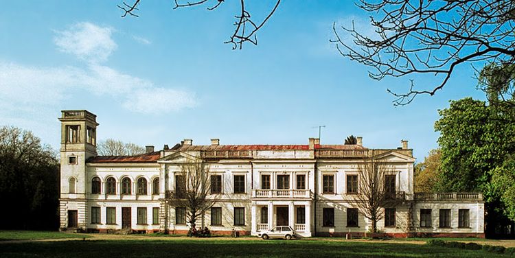Na miejscu drewnianego dworu, w końcu XVIII w. powstało nowe założenie pałacowe. To tutaj spędził dwa wakacyjne miesiące roku 1828 młody Fryderyk Chopin. Białe ściany i charakterystyczna wieża neorenesansowego pałacu toną dziś w parkowej zieleni. Obecną formę nadał budowli (na zlecenie kolejnych właścicieli – Dziewulskich) Władysław Marconi, kierujący przebudową w 1910 r. Nie jest to zatem stricte ten sam pałac, w którym przebywał Fryderyk (ale podczas ostatniej renowacji odkryto fragmenty XVIII i XIX w. polichromii, które można dziś oglądać w jego wnętrzach).