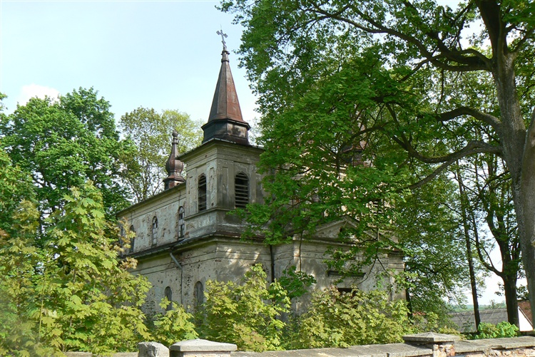Budowla murowana na planie prostokąta, fasada zachodnia flankowana dwoma piętrowymi wieżami, połączonymi trójkątnym naczółkiem. Świątynia trójnawowa, prezbiterium niższe, zamykające półkoliście nawę główną. Były tu trzy ołtarze niektóre zachowały się do dziś. Wyjątkowa świątynia z XVII wiecznym rodowodem jest obiektem zapomnianym, a władze kościele postulują za jego rozbiórką. Na cmentarzu parafialnym do dziś zachowane są nagrobki rodziny Kołłątajów - współfundatorów tego kościoła.