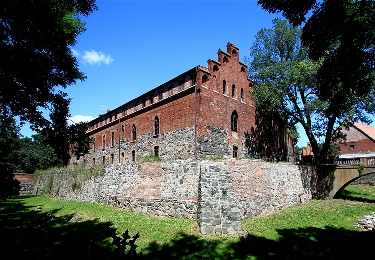 Najcenniejsza jest jednak nie bryła zamku głównego, lecz skromna brama prowadząca na jego dziedziniec z przedzamcza, dawniej poprzedzona szeroką fosą. W arkadzie nad otworem bramnym zachowała się mocno zniszczona kompozycja z ceramicznych płaskorzeźb, przedstawiających rycerza na koniu i dwóch pieszych, uzbrojonych we włócznie i miecz. Postać na koniu jest interpretowana jako wyobrażenie Chrystusa wjeżdżającego do Jerozolimy lub wielkiego mistrza krzyżackiego w towarzystwie braci-rycerzy. Tak czy inaczej, jest to prawdopodobnie najstarsza - bo pochodząca jeszcze z przełomu XIII i XIV w. - rzeźba, która powstała na terenie dawnego państwa zakonnego.