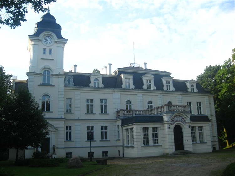 Siedziba ordynata nie znajdowała się w samym Obrzycku, lecz na jego przedmieściu na prawym brzegu Warty we wsi Zielonagóra. Istniejący już XVIII-wieczny dwór został powiększony (1856-1857) i przebudowany (1906-1910) na piętrowy pałac z kwadratową wieżą w narożniku i neobarokowymi elewacjami. Obecnie należy do Uniwersytetu im. Adama Mickiewicza, jest tu Dom Pracy Twórczej i Wypoczynku. Z wychodzących na południe okien pałacu widać płynącą w dole Wartę. Wokół rozciąga się ładnie utrzymany park krajobrazowy, w którym rosną stare drzewa, a nad jarami opadającymi ku rzece przerzucono łukowate mostki. W granicach parku zachowały się dwie oficyny z drugiej połowy XIX w., budynek bażantarni z ok. 1910 r. oraz żeliwna altana z końca XIX w. Warto zobaczyć rosnące tu pomnikowe modrzewie, z których najokazalszy ma obwód 370 cm.