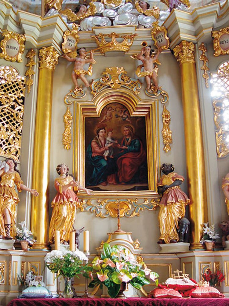 W wystroju najważniejszego zabytku Warty - pobernardyńskiego kościoła pw. Wniebowzięcia NMP - dominuje barok. Z połowy XVIII w. pochodzą freski w nawie, prezbiterium i kaplicy św. Anny. Są dziełem zespołu malarzy - bernardynów pracujących pod kierunkiem brata Walentego Żebrowskiego, autora polichromii w wielu kościołach w całej Polsce. Warckie malowidła warto zobaczyć, wyróżniają się bowiem niezwykle bogatą rokokową ornamentyką. Uwagę zwracają ponadto barokowe ołtarze - główny i dwa boczne - pełne złoceń, efektownych figur i smukłych kolumn. W kościele znajduje się także obraz najsłynniejszego malarza doby baroku w Polsce - Włocha Tomasza Dolabelli.