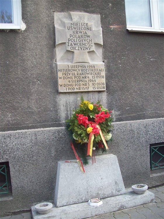 Miejsce pamięci przy ul. Rakowieckiej 15/17 jest uświęcone krwią Polaków, którzy polegli za wolność ojczyzny. Tablica upamiętnia Polaków, którzy zostali rozstrzelani przez hitlerowców 3 sierpnia przy ulicy Rakowieckiej numer 4 było to 14 osób, natomiast 4 sierpnia pod numerem 5 - 10 osób i pod numerem 15/17 następne 15 osób.
