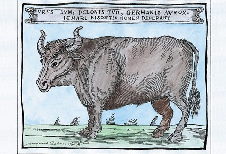Bos primigenius to łacińska nazwa tura, przodka dzisiejszych ras bydła domowego. Tysiące lat temu występował w Azji, Europie i północnej Afryce. Człowiek, polując na to potężne zwierzę (osiągało 2 m wysokości i 3 m długości) i trzebiąc prastare puszcze, przyczynił się do wyniszczenia ich populacji. Ostatniego tura we Francji widziano w X w., dwa stulecia później wyginął na ziemiach niemieckich. Najdłużej tury żyły w polskich lasach. Ostatnie stado objęto ochroną na Mazowszu, w Puszczy Jaktorowskiej. Mimo podjętych starań nie udało się uchronić gatunku przed wymarciem. Tur, symbol siły i byczego zdrowia, powoli wymierał. Przypuszcza się, że tutejszą rodzinę pokonała choroba przeniesiona od udomowionych kuzynów pasących się na śródpuszczańskich pastwiskach. Ostatnia turzyca padła w okolicy Jaktorowa w 1627 r.