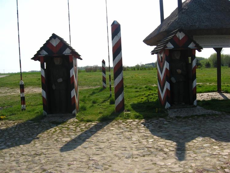 Ciekawostką jest odtworzenie niemiecko-rosyjskiego przejścia granicznego między Borzykowem a Pyzdrami. Na parkingu przy drodze nr 442 w 2004 r. ustawiono jako atrakcję dwie budki strażnicze, z których wyglądają rzeźbione umundurowane postacie o groźnych minach. Tablice umieszczone obok opisują historię tego miejsca i propagują walory okolicy. Wydawane tu certyfikaty upoważniają do "wolnego od cła przewozu beli sukna i bańki nafty albo worka pyr i pięciu tuczonych gęsi".