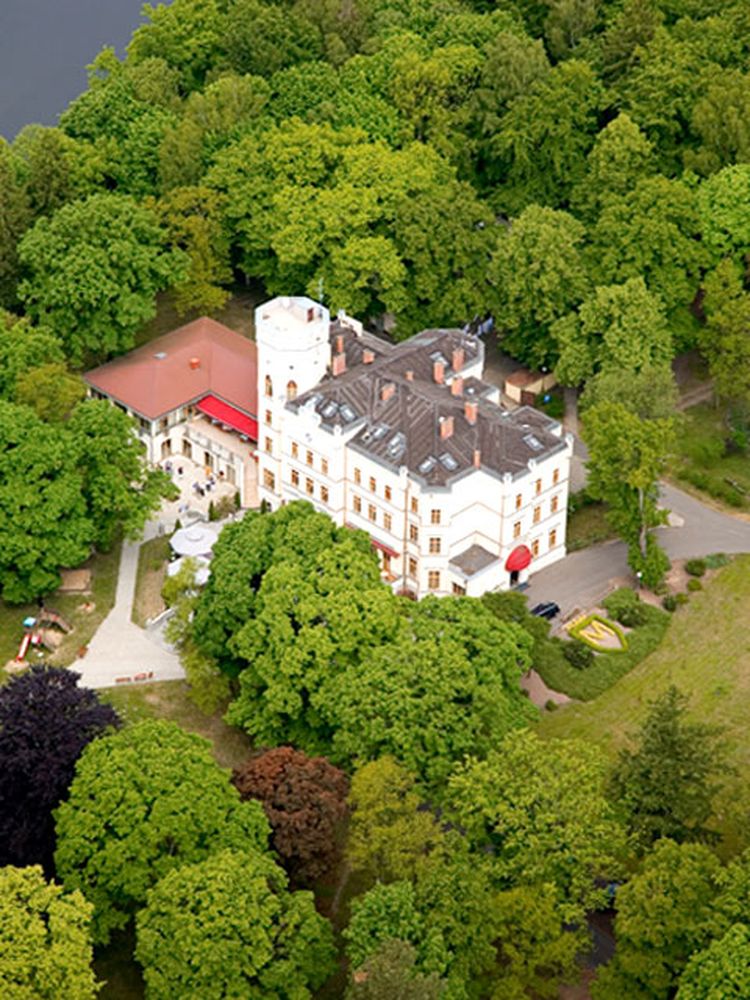 W parku nad jeziorem stoi eklektyczny pałac, dawna siedziba rodu von Flamming, wybudowany w 1899 r. W parku znajduje sie pamiątkowy kamień, umieszczony tam przez von Flammingów w 1909 r. dla uczczenia 700 lat pobytu rodu na Pomorzu. Od 1992 r. w pałacu mieści się luksusowy hotel.