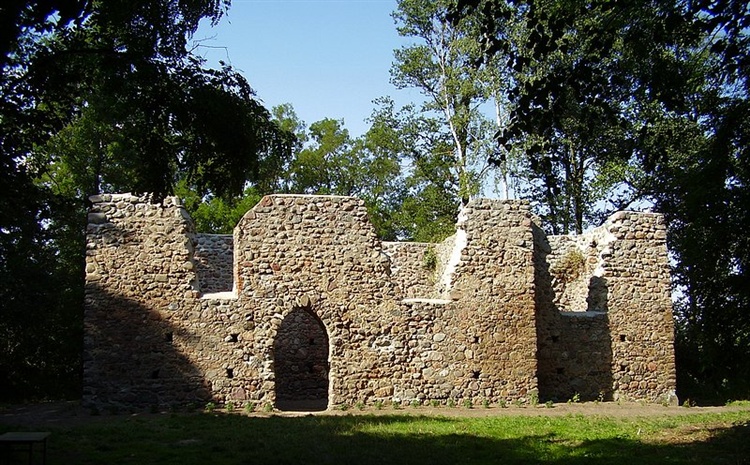 Gryżyna należała początkowo do pochodzącego z Pomorza rodu Borków. To oni w końcu XIII w. kazali wznieść kamienny wczesnogotycki kościół pw. św. Marcina. Z nieznanych powodów, prawdopodobnie na początku XV w., osada została przeniesiona na dzisiejsze miejsce - w dolinę Obry, 1 km na północny wschód od pierwotnego siedliska. Tam zbudowano nowy kościół, tym razem pw. św. Barbary (w obecnej formie neogotycki, z końca XIX w.). Stara niepotrzebna świątynia stała się ruiną. Dziś można oglądać pozostałości jej bardzo solidnych kamiennych murów.
