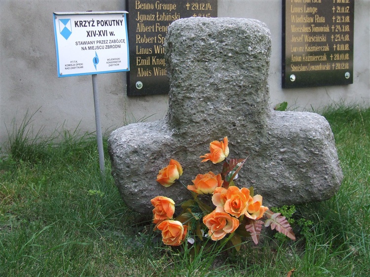 Najstarsze pochodzą z przełomu XIV i XV w., upowszechniły się w całej środkowej Europie w XV w., a stawiano je jeszcze przez następne dwa wieki. Mowa o wyciosanych z jednego kawałka kamienia krzyżach pokutnych, których postawienie pozwalało zabójcy uniknąć kary śmierci, gdy zawarł w tej sprawie ugodę z rodziną ofiary. Najwięcej takich krzyży zachowało się na Dolnym Śląsku. Można je także spotkać na graniczącej ze Śląskiem ziemi wschowskiej.