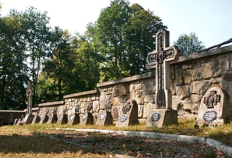 Spoczywają tu Austriacy, Niemcy, Rosjanie i Polacy. Dokładna liczba pochowanych żołnierzy nie jest znana, szacunkowo wg różnych źródeł ok. 98-110. Zachowały sie tabliczki z nazwiskami 36 żołnierzy z 17 p. strz., 11 p. drag., 106 batalionu i 34 pułku landsturmu oraz 6 dywizjonu artylerii konnej, ponadto 4 żołnierzy nierozpoznanych. Zbiorowy grób żołnierzy rosyjskich kryje 53 żołnierzy którzy polegli w grudniu 1914 roku.